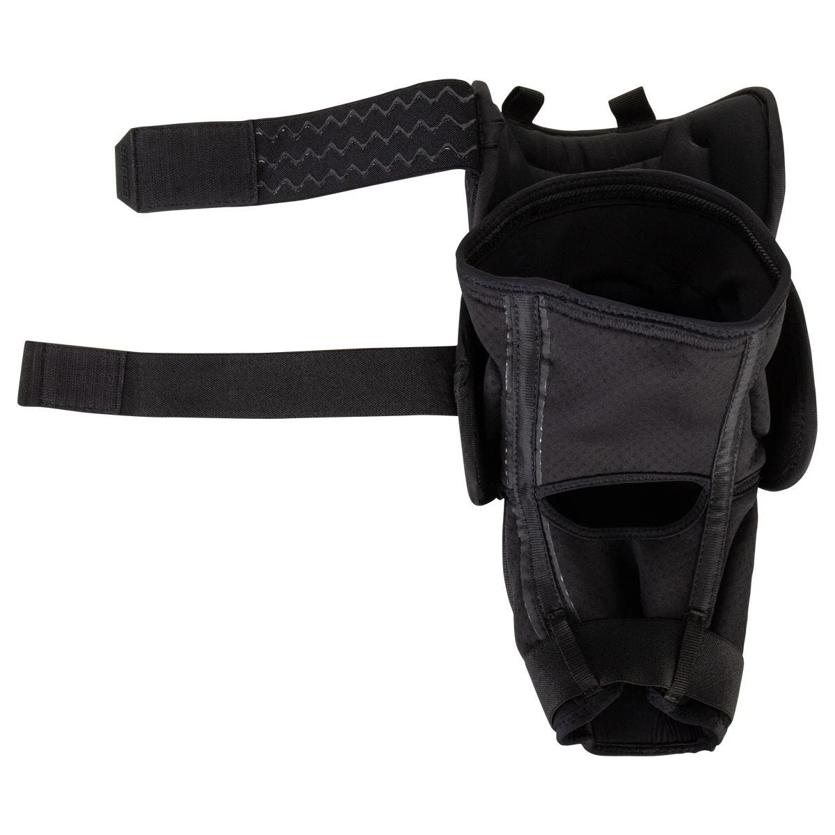 - Sleeve System w/ Upper Grip: These knee guards fit around the knee with a soft-touch compression sleeve, secured at the top with a silicone beaded upper strapping.