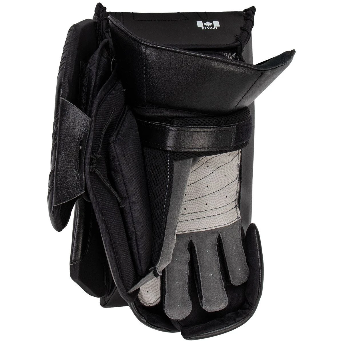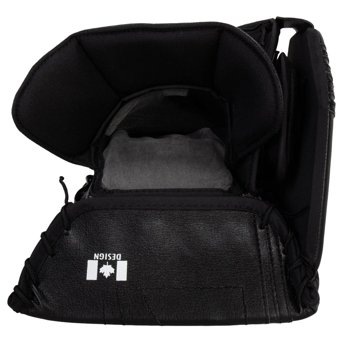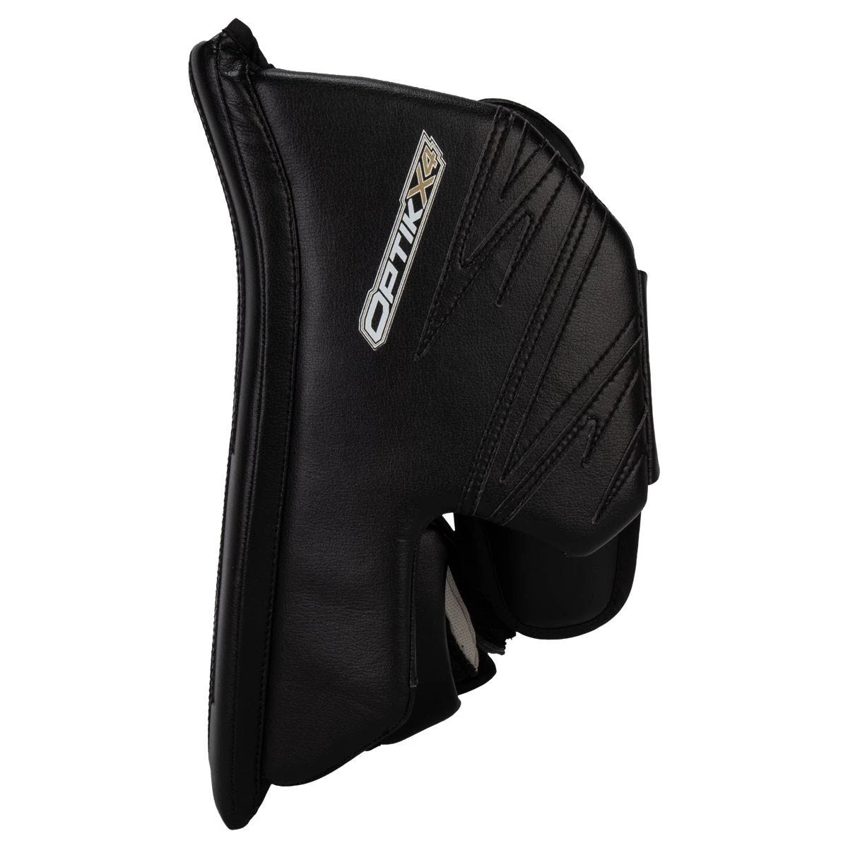 - Hinged Cuff w/ Open Backhand: A low hinged cuff and open backhand helps to reduce binding between the blocker’s cuff and chest protector sleeves. On the ice, this gives the Optik X4 blocker a responsive, precision feel.