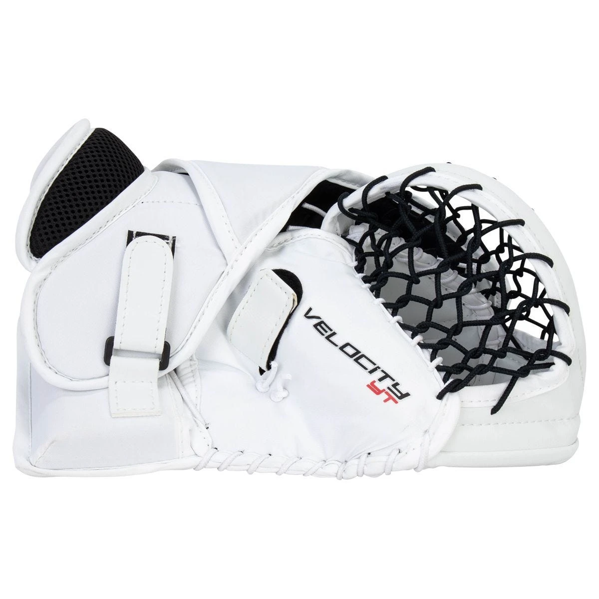 - Easily-adjustable Strapping: The VX1 glove makes it easy for young goalies still learning how to properly fit their gear, fastening the backhand and wrist with wide padded pull straps.